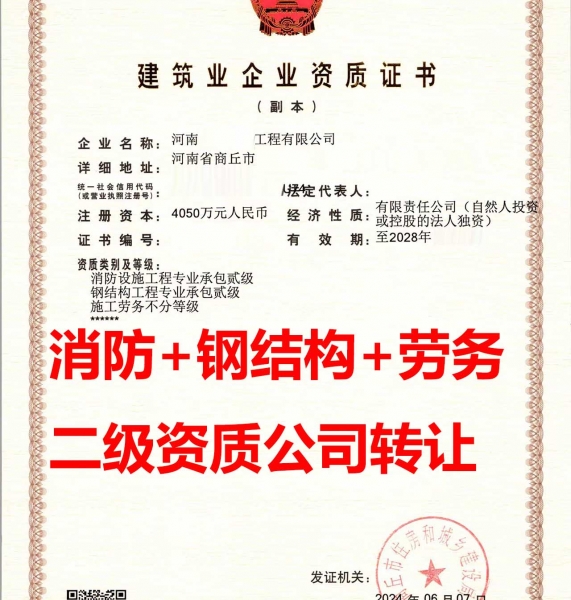 湖北省钢结构工程专业承包二级资质转让_湖北钢构二级资质出售_湖北省钢结构工程专包资质转让出售