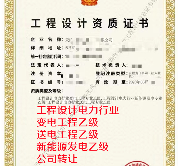 北京电力行业设计送变电乙级资质转让_北京电力行业设计送变电乙级资质公司出售_北京送变电乙级资质公司出售转让