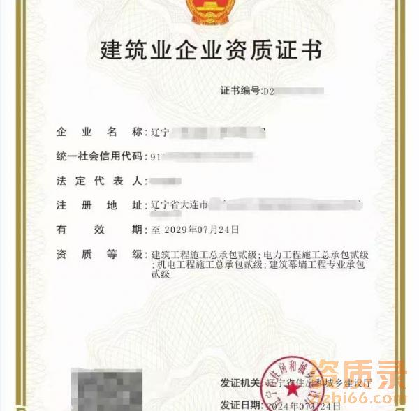 转让出售辽宁装修工程、幕墙工程、机电安装工程专业承包一级资质公司
