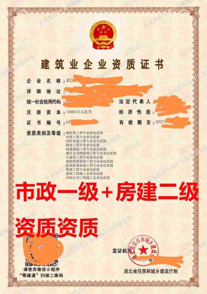 湖北武汉市政公用工程施工总包一级资质公司转让、已剥离好的市政总包资质公司出售¥面议