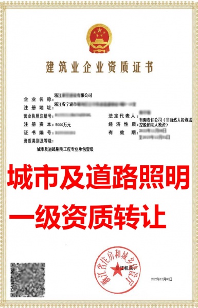 浙江宁波城市及道路照明专包一级资质公司转让、城照工程专包一级资质公司出售¥面议