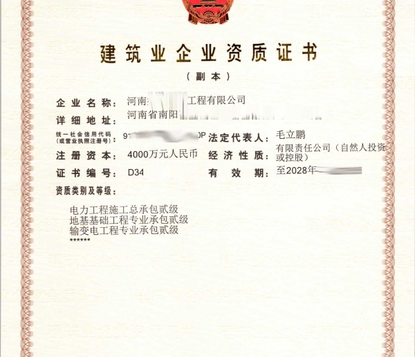 转让河南电力工程施工总承包二级资质公司,地基工程、输变电工程专包资质公司出售¥面议