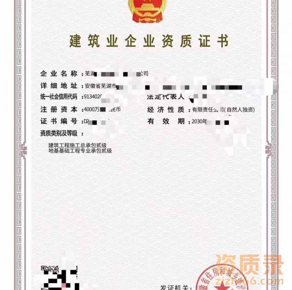 转让芜湖建筑工程总承包、地基基础工程专包二级资质公司