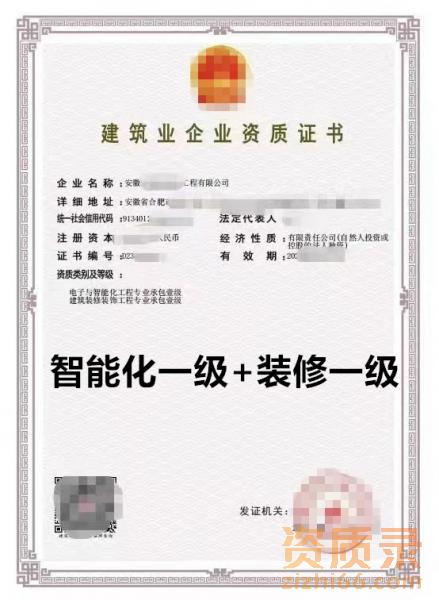 安徽电子智能化一级+装修一级资质公司转让出售