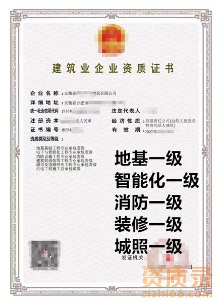 安徽地基一级,智能化一级,消防一级,装修一级,城照一级资质公司出售转让