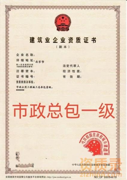 北京市政一级资质转让,分立好的,无经营