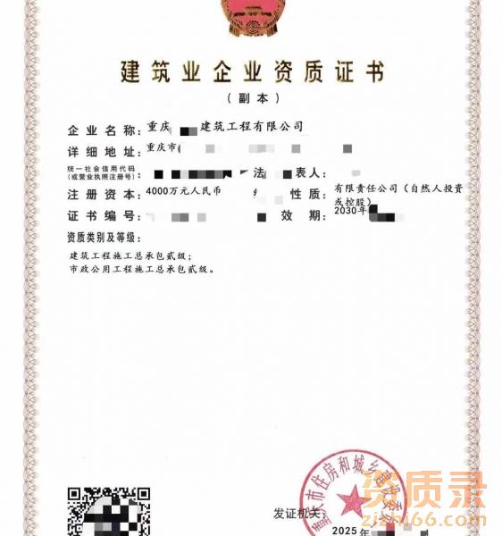 转让重庆建筑工程、市政公用工程施工总承包二级资质公司