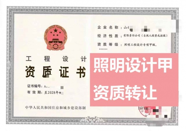 照明工程设计专项甲级资质公司转让、照明工程设计甲级资质出售