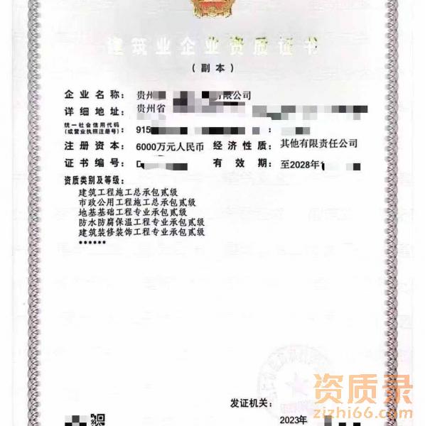转让贵州建筑工程施工总承包二级资质公司