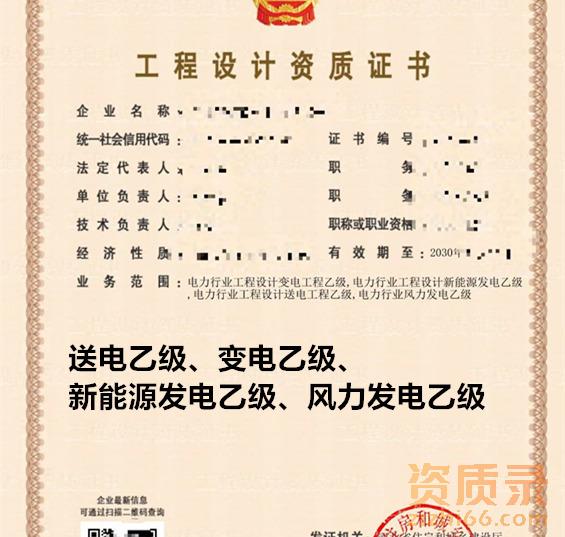 电力行业送电工程乙级,变电工程乙级,新能源乙级资质,风力发电乙级。