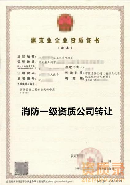 河南消防设施一级资质公司转让出售