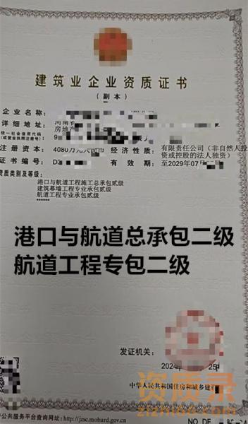 河南港口与航道总承包二级,航道工程专包二级资质公司转让出售