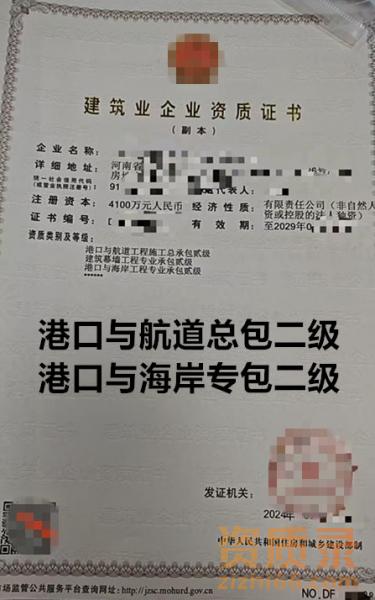 河南港口与航道总包二级,港口与海岸专包二级资质公司转让出售