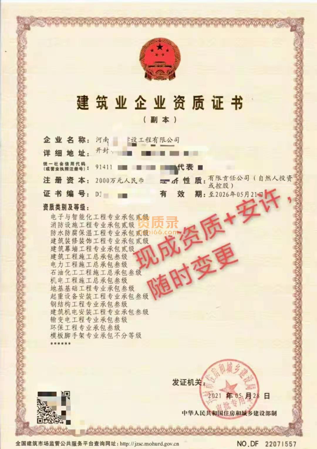 开封 装修二级施工资质特种工程 现成安许 多套