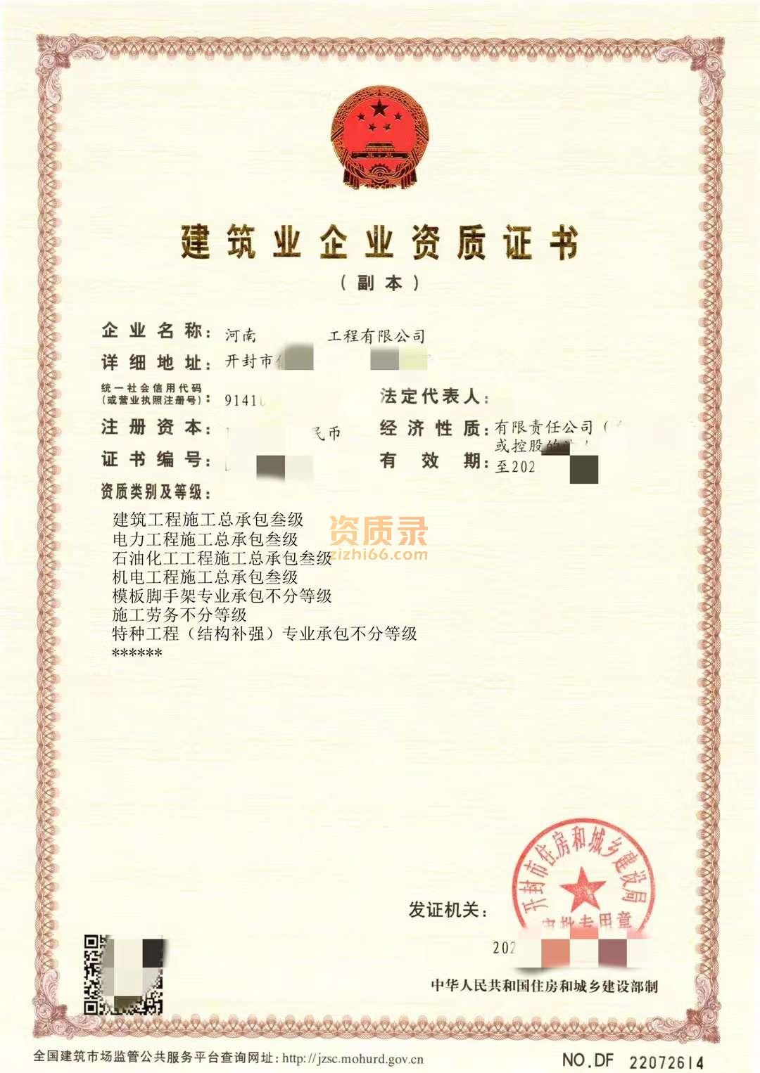 总承包资质明细:建筑工程三级、电力工程三级、机电工程三级、石油化工工程三级