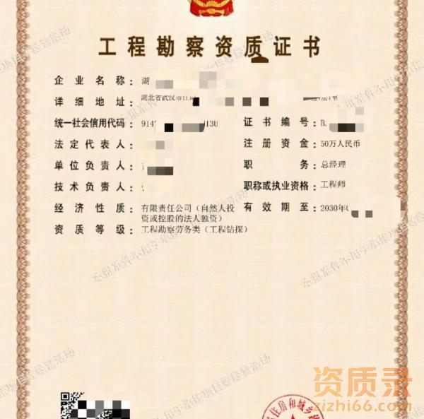 湖北工程勘察劳务(工程钻探)资质公司转让出售