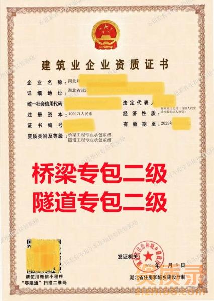 湖北武汉桥梁工程专业承包二级资质转让代办,代办桥梁二级资质,隧道二级资质公司转让代办出售