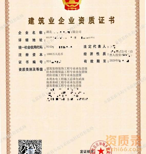 转让湖北装修工程、防水工程、幕墙工程多项专业承包一级资质公司