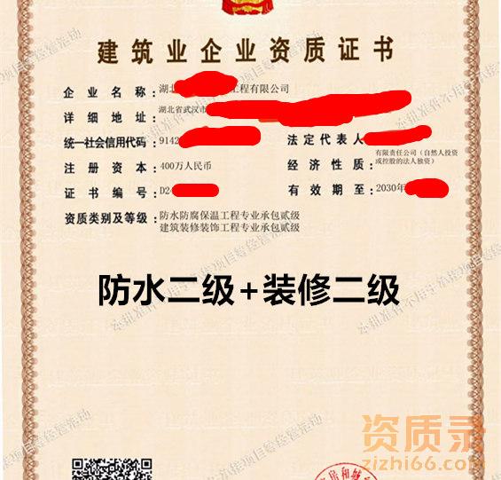 武汉装修二级+防水二级资质公司转让出售