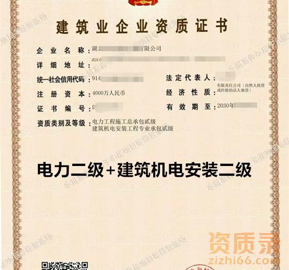 湖北电力二级+建筑机电安装二级资质公司转让出售