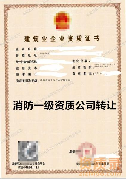 湖北消防设施一级资质公司出售转让