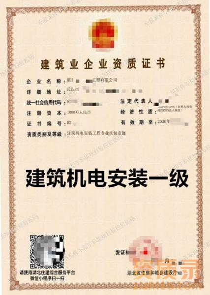湖北建筑机电安装一级资质公司出售转让