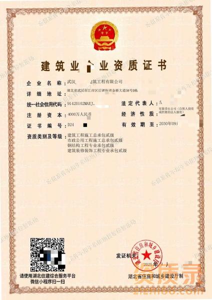 武汉(建筑+市政总包二级资质,钢构二+装修二) 资质整转