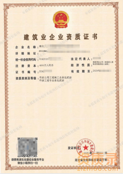 武汉(建筑+市政总包二级资质,钢构二+装修二) 资质整转