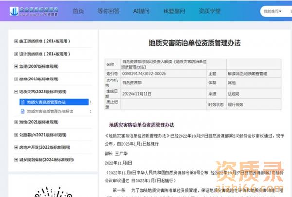 一、问:我们公司想申请地质灾害评估和治理工程勘查设计乙级资质,最需要关注的核心政策是什么?