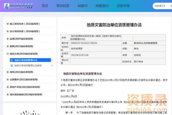 地质灾害资质标准