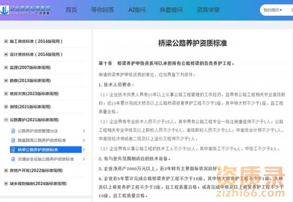 通过以上问答,相信您对公路养护(桥梁)资质办理政策有了更全面的了解。在实际操作中,请务必以当地交通运输主管部门的最新规定和要求为准,确保资质申请和使用的合规性。资质录作为专注于建筑资质服务,从事有十余年资质代办经验,服务建筑资质企业有500余家,服务的客户遍布北京、湖北、河南、陕西、湖南、安徽、山西等多省。