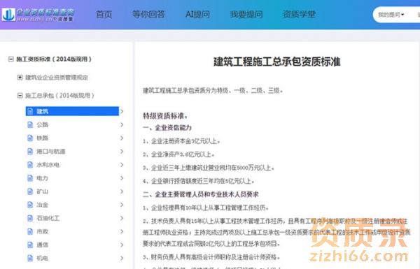 《新资质标准》网站,简单说就是一个政策说明书和问答中心。它把住建部等政府部门发布的那些复杂难懂的资质标准,整理得清清楚楚、明明白白。企业用户不仅能查到最新的资质都有哪些类别、什么等级,更能看到办一个资质具体需要配多少个有证的人,需要什么专业,一清二楚。