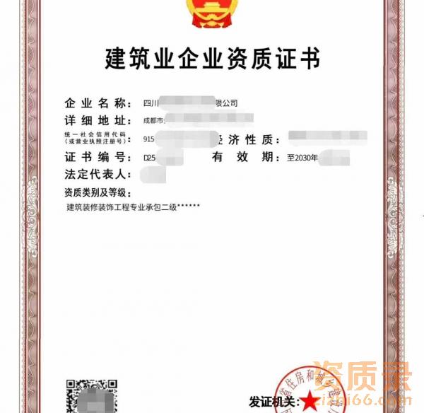 转让四川建筑装饰装修工程专业承包二级资质公司