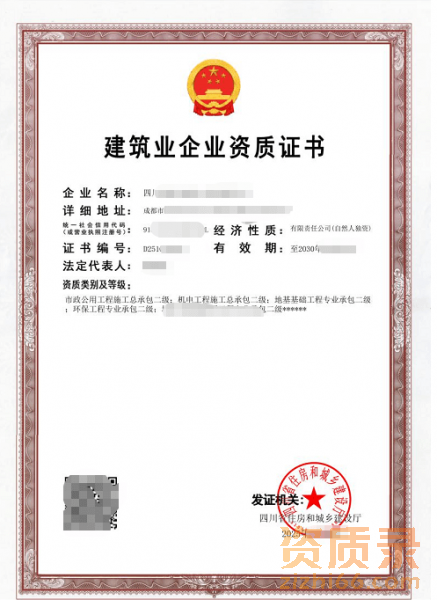 四川五总包二级资质转让 刚延期,有效期至2030年,有业绩好投标