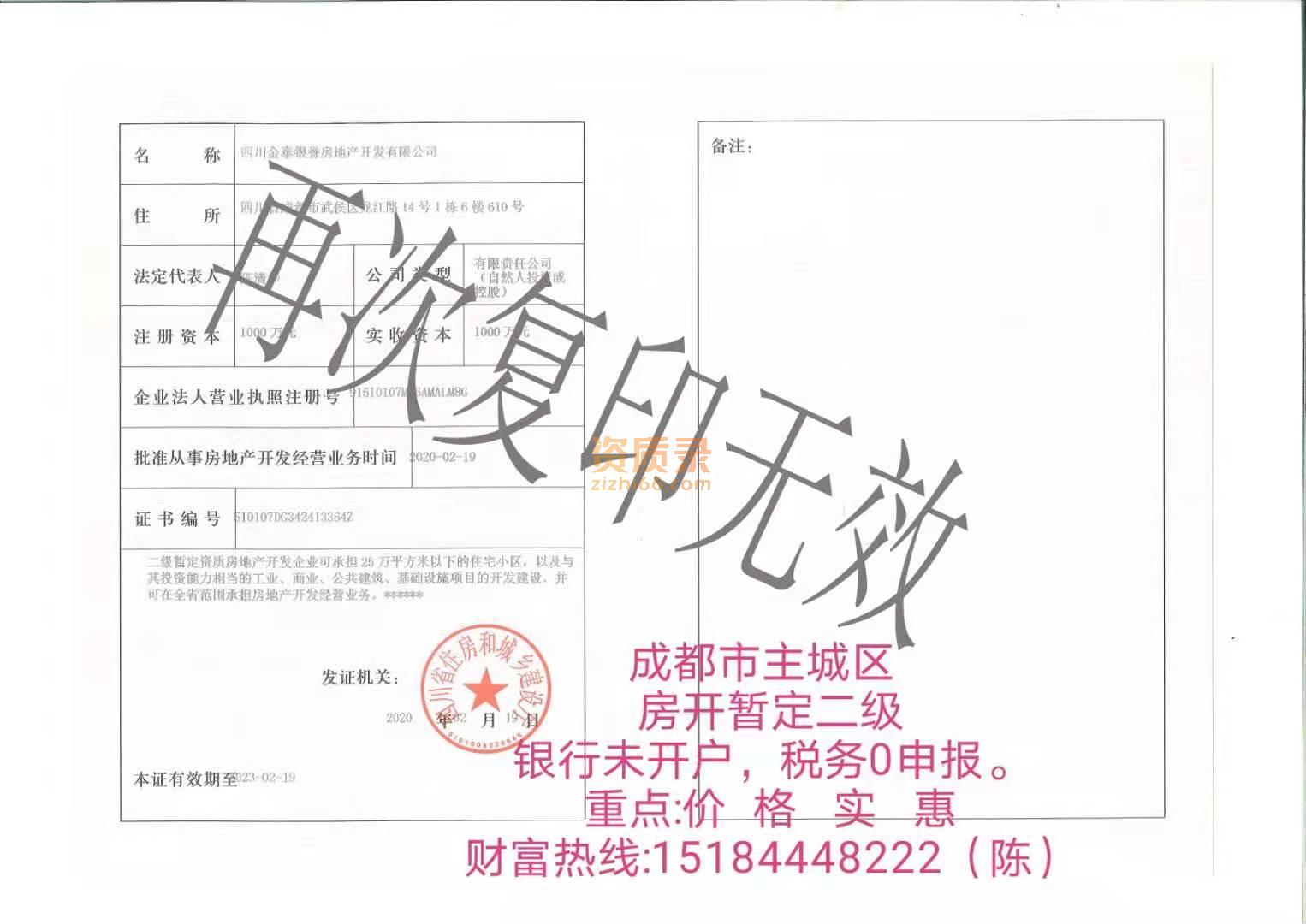 转让成都主城区 房开暂定二级(可升级),公司干净,银行未开户,无债权债务,