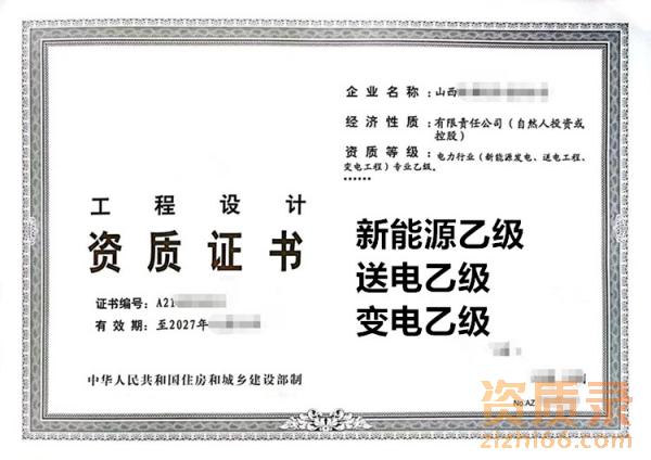电力行业送电工程乙级,变电工程乙级,新能源乙级资质。