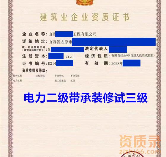 山西电力总承包二级资质带承装修试三级公司转让出售
